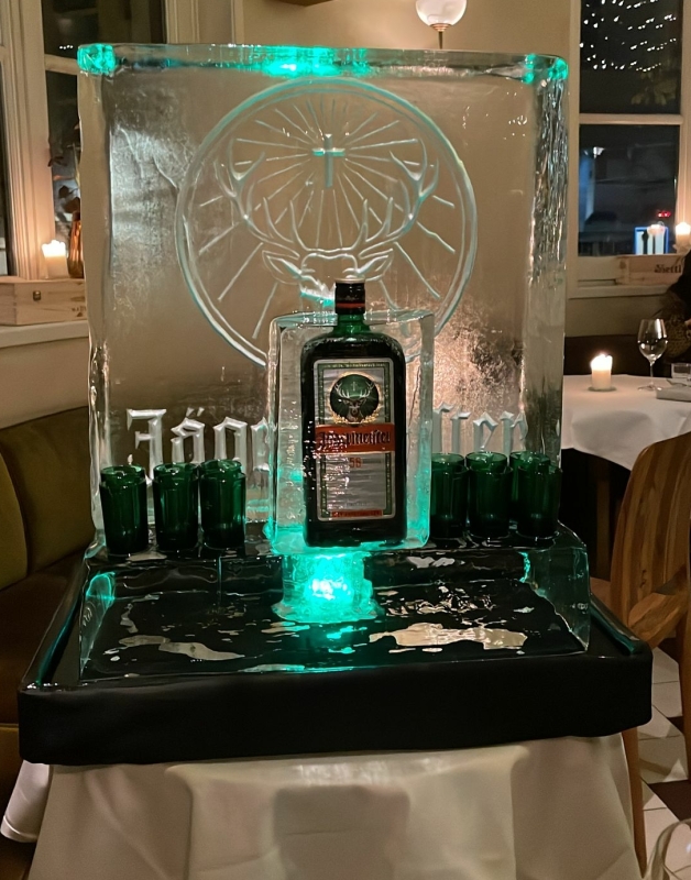Daarnaast hebben we een op maat gemaakte ijssculptuur gerealiseerd, waarin het iconische Jägermeister-logo centraal stond. Een echte eyecatcher die niet alleen indruk maakte, maar ook naadloos aansloot bij de branding: alleen als 'ie ijs- en ijskoud is!