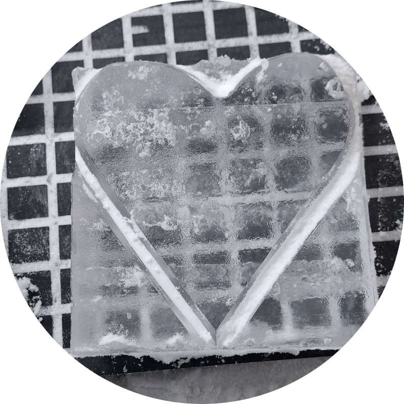 In de eerste les stond het aanleren van de basistechniek centraal. De leerlingen maakten een hartje uit een klein blok ijs en leerden daarbij hoe je veilig en gecontroleerd kunt werken met de verschillende beitels en zagen. Het doel was vooral om vertrouwd te raken met het materiaal en de technieken.