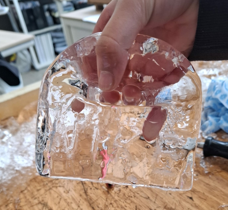 Tijdens de tweede les kregen de leerlingen meer vrijheid en mochten ze met een nieuw blok ijs zelf bedenken wat ze wilden maken. Dit zorgde voor veel creativiteit en verrassende resultaten, waarbij ieder ontwerp uniek was.