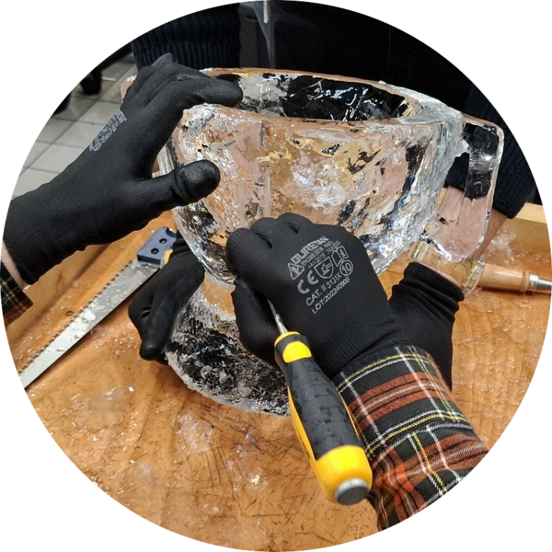 Tijdens een workshop ijssculpturen gaan deelnemers zelf aan de slag met grote blokken ijs en speciaal gereedschap. Onder begeleiding van een ervaren instructeur leren ze stap voor stap hoe ze een eigen sculptuur kunnen creëren. Van een eenvoudig logo of symbool tot een abstract kunstwerk: iedereen kan meedoen, ongeacht ervaring. Het mooie is dat het resultaat direct zichtbaar is, wat zorgt voor enthousiasme en trots binnen het team.
